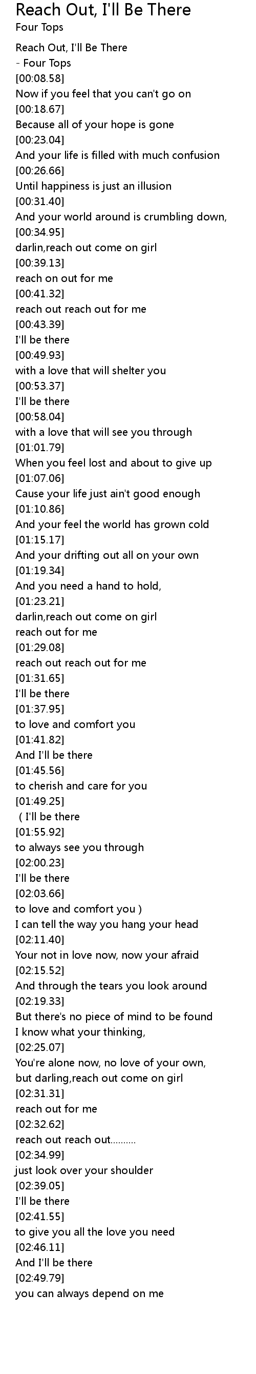 | [00:03.40] | Reach Out, I' ll Be There |