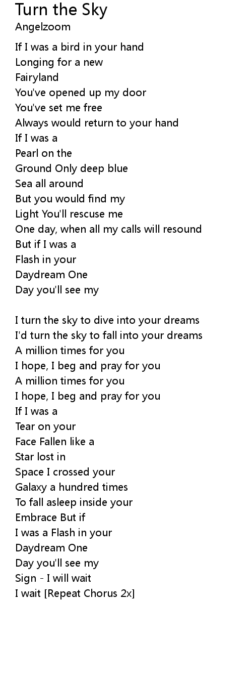 I turn the sky to dive into your dreams |