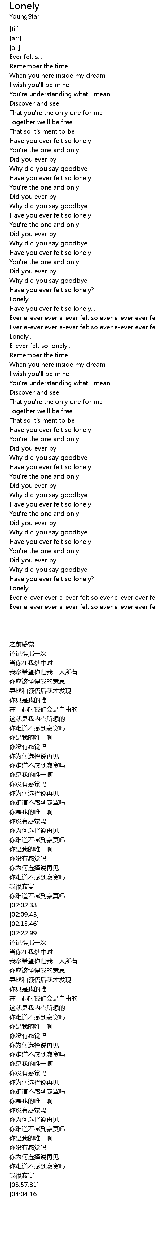 Ever e-ever ever e-ever felt so ever e-ever ever felt lonely so |