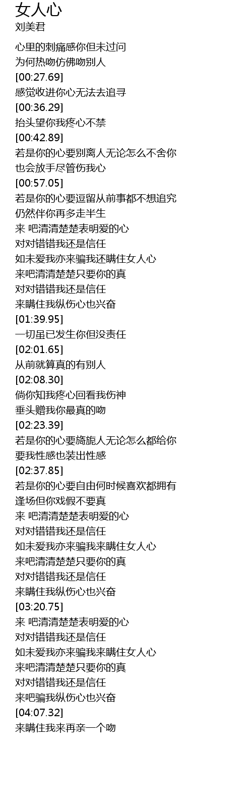 | [03:46.60] | 如未爱我亦来骗我来瞒住女人心 |