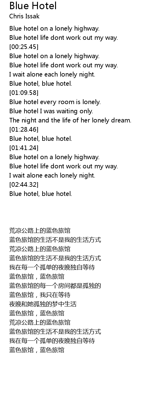 Blue hotel life dont work out my way. |