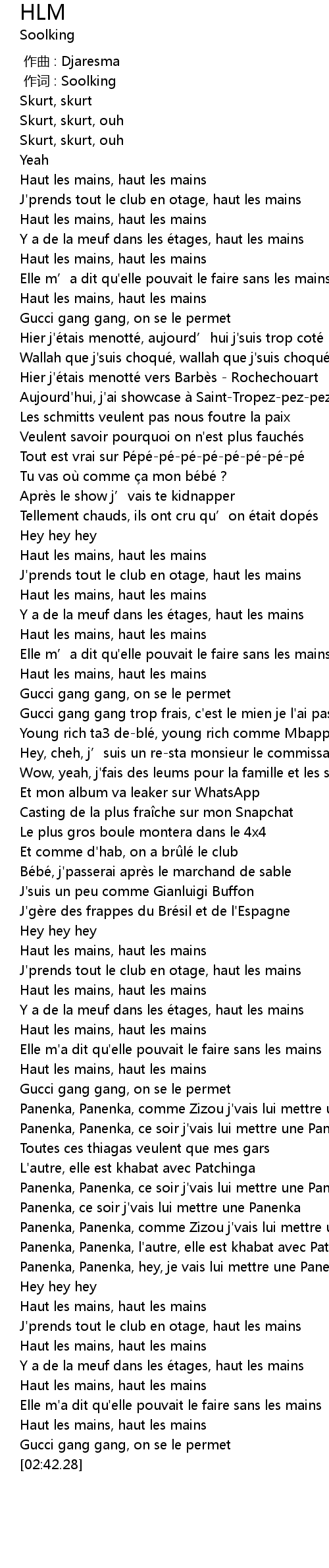 | [01:13.84] | Gucci gang gang trop frais, c' est le mien je l' ai pas volé |