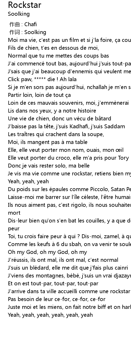 | [01:52.49] | J'arrive dans ta ville accueilli comme une rockstar |