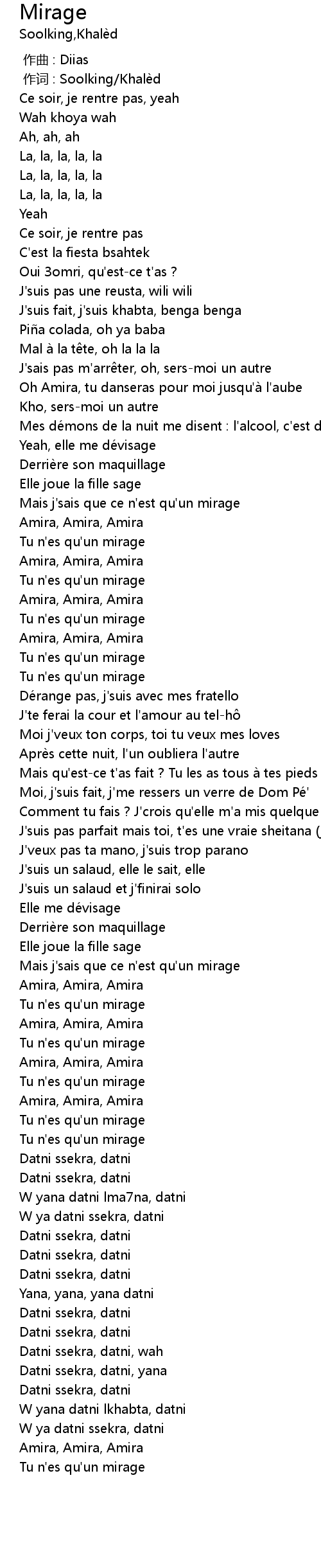 | [00:00.687] | 作词 : Soolking/Khalèd |