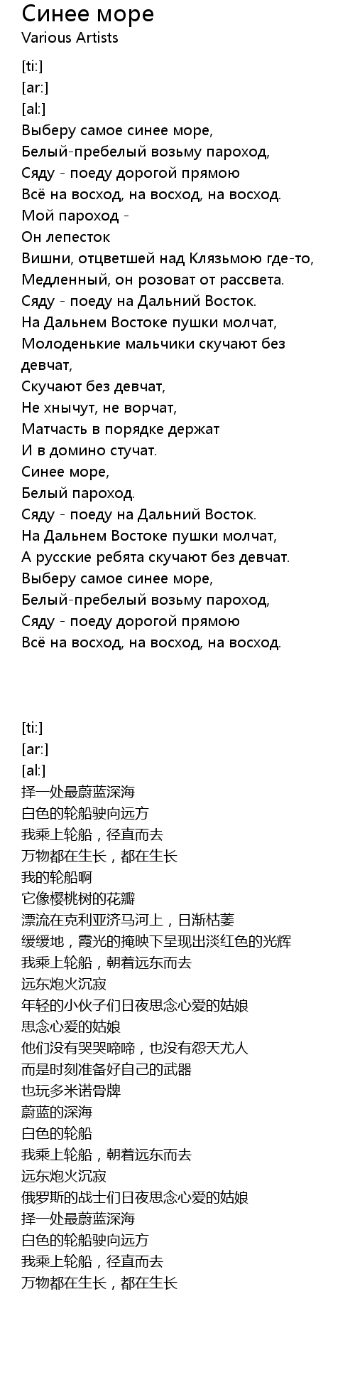 Синее море, |