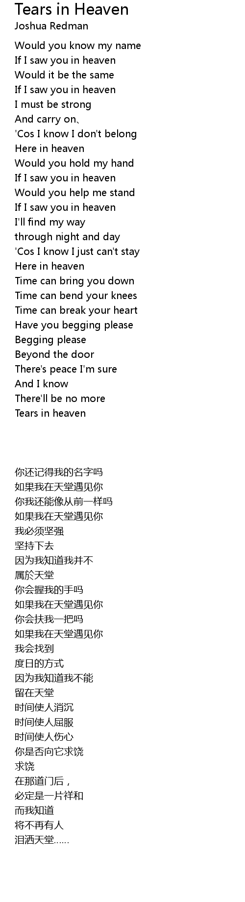 | Song | Tears in Heaven |