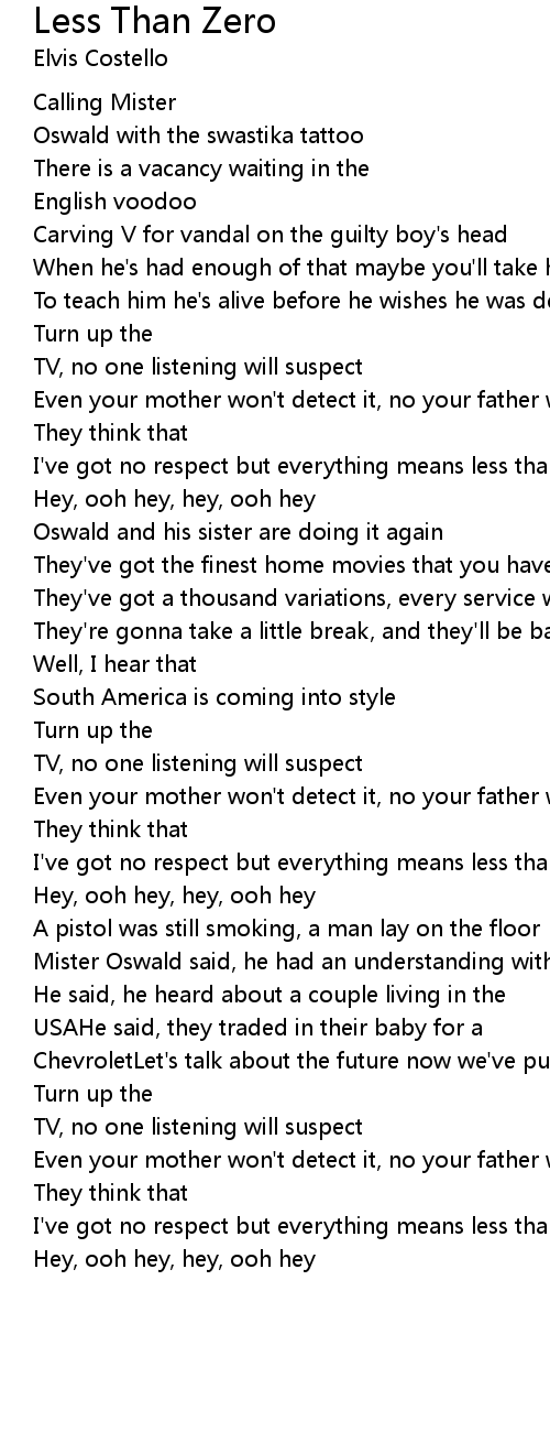 I've got no respect but everything means less than zero |