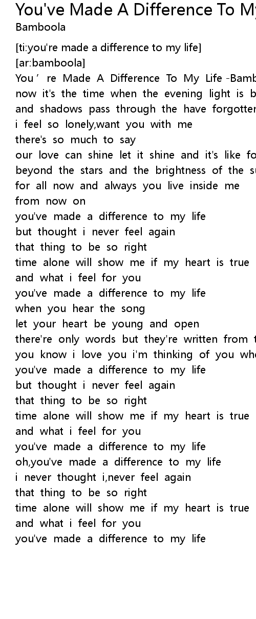 | [03:00.71] | you've made a difference to my life |