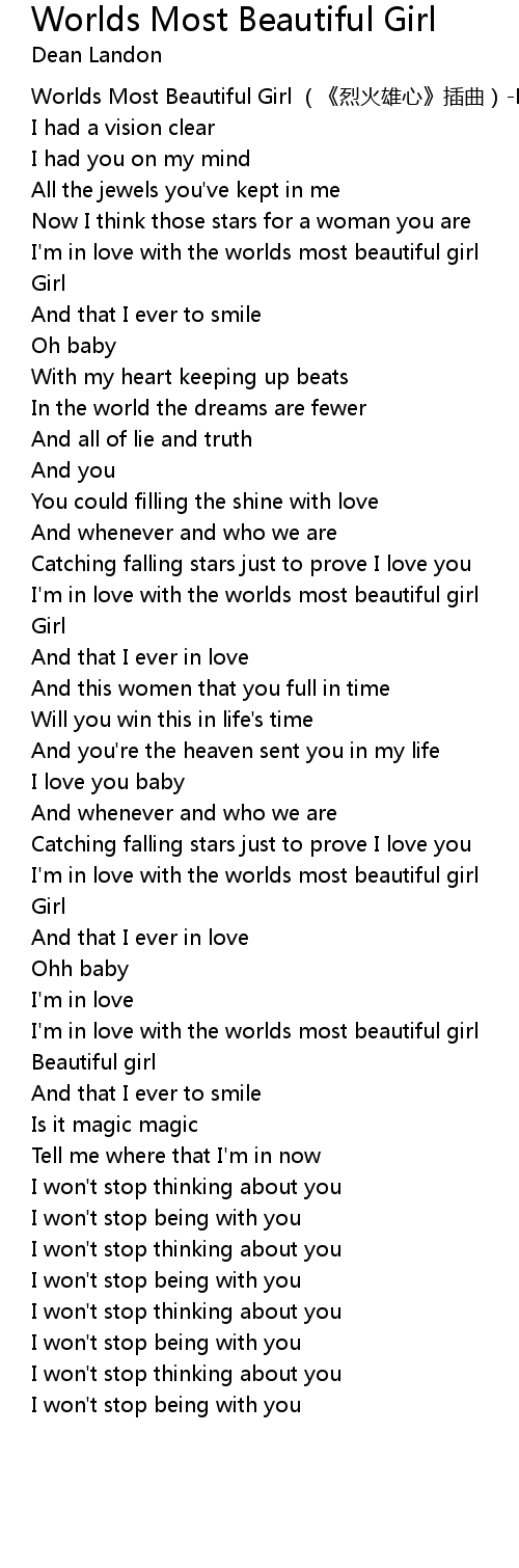| [00:00.408] | Worlds Most Beautiful Girl liè huǒ xióng xīn chā qǔ Dean Landon |