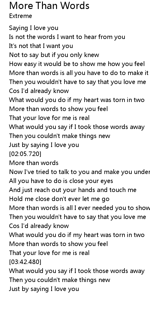 | [01:04.370] | Then you wouldn' t have to say that you love me |