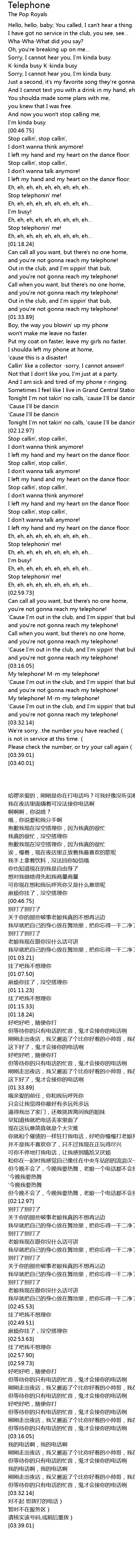 | [03:24.88] | My telephone! Mmmy telephone! |