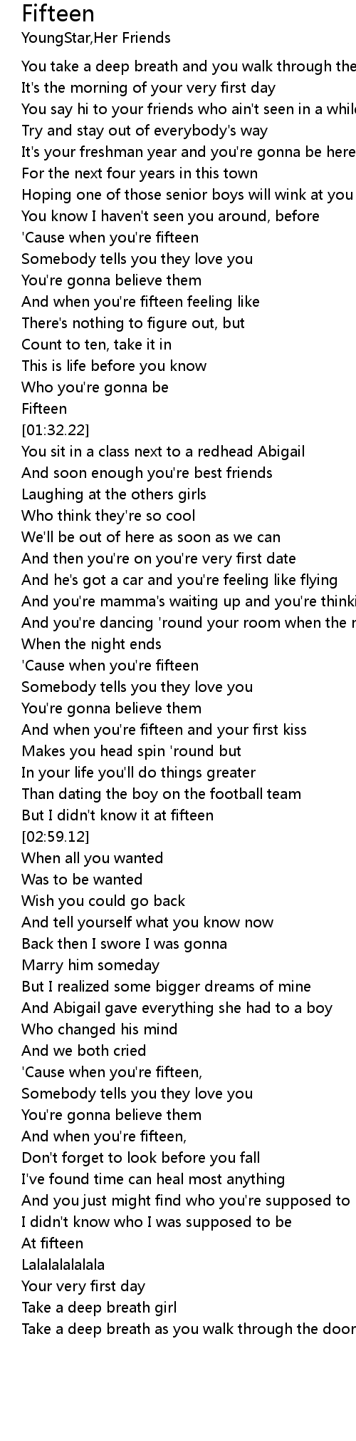 'Cause when you're fifteen |