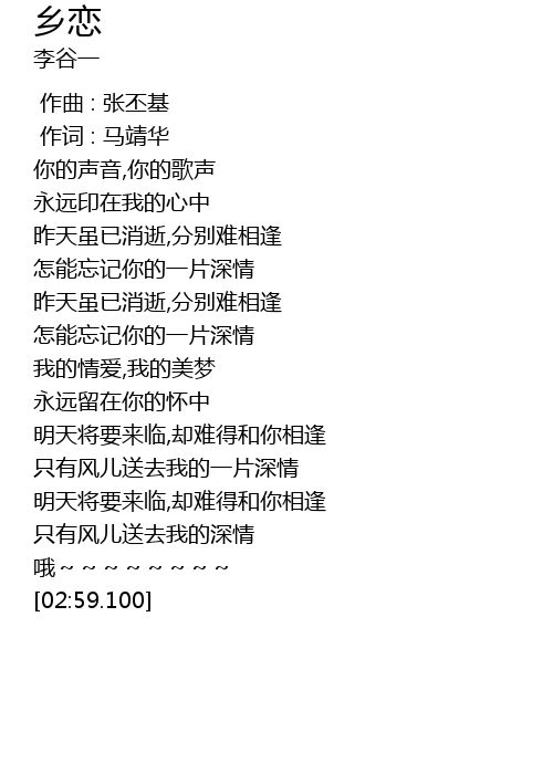 | [02:20.100] | 只有风儿送去我的深情 |