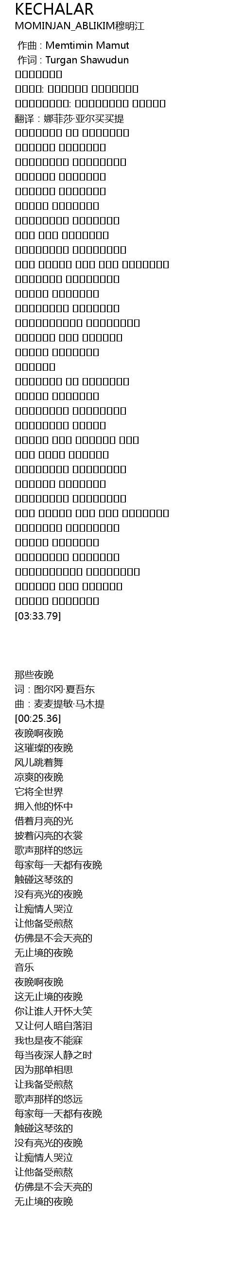 | [03:23.68] | ئۇزۇن كىچىلەر |