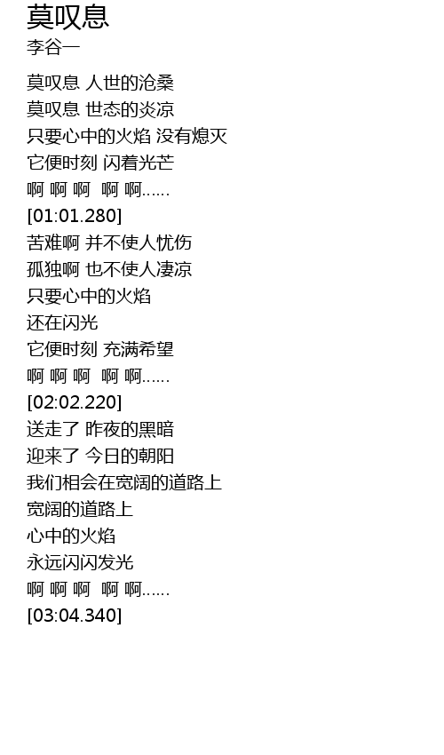 | [00:16.610] | 莫叹息 世态的炎凉 |