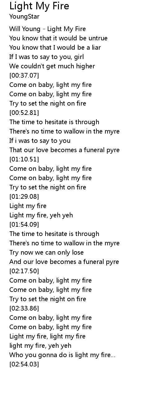 | [02:45.31] | light my fire, yeh yeh |