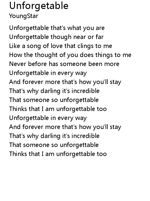 Thinks that I am unforgettable too |