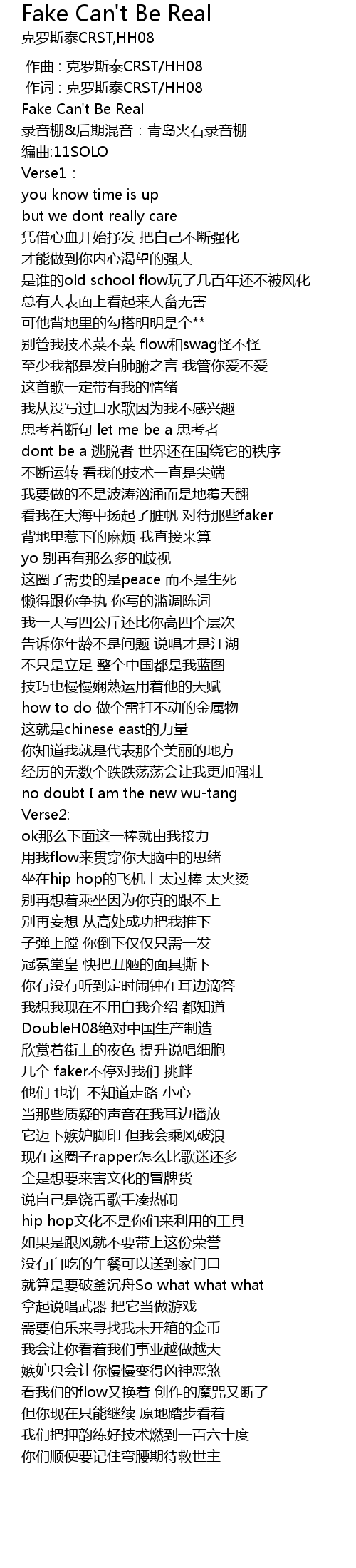 | [00:13.262] | Fake Can' t Be Real |