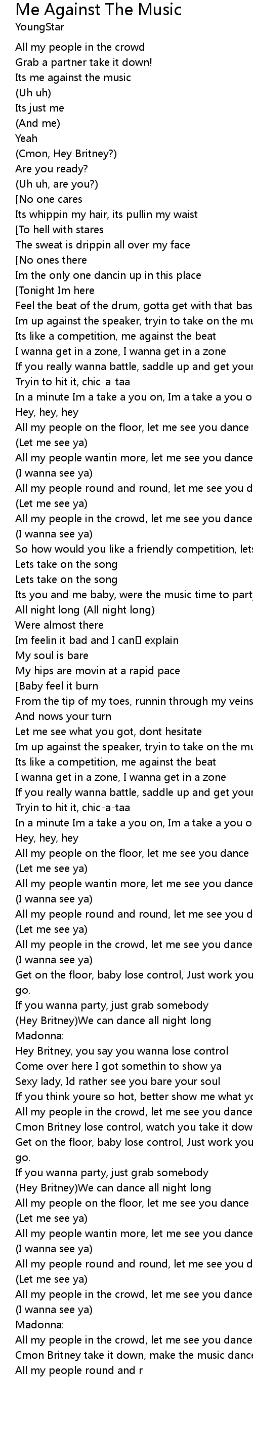 | [03:28.97] | Cmon Britney take it down, make the music dance |
