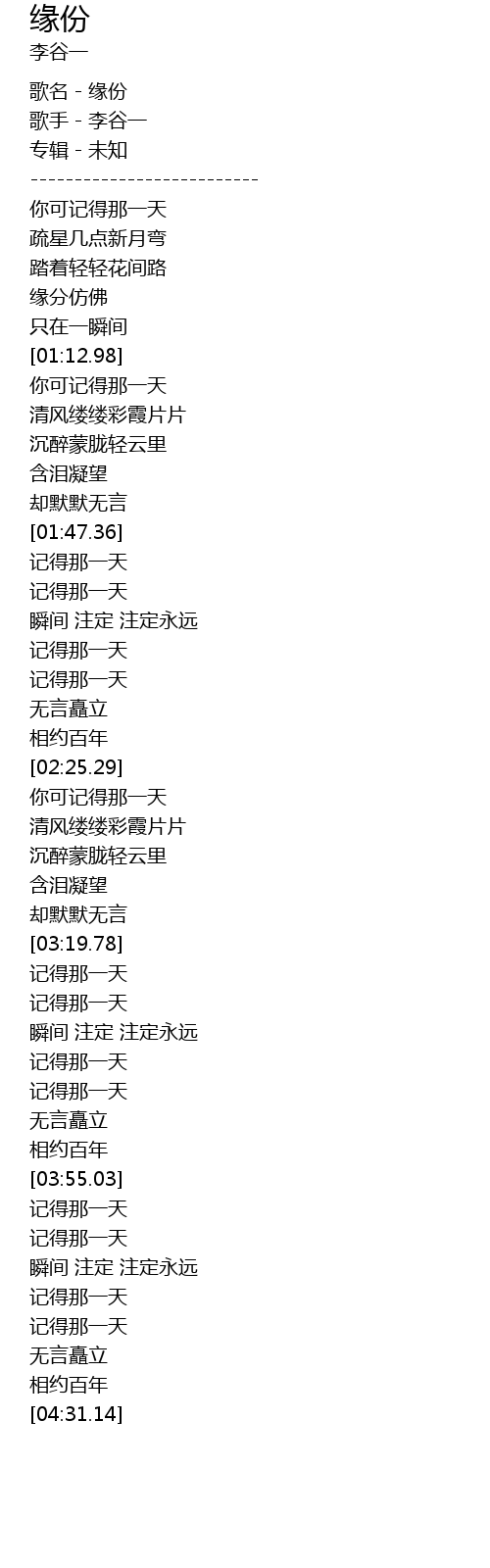 | [00:01.04] | 歌名-缘份 |