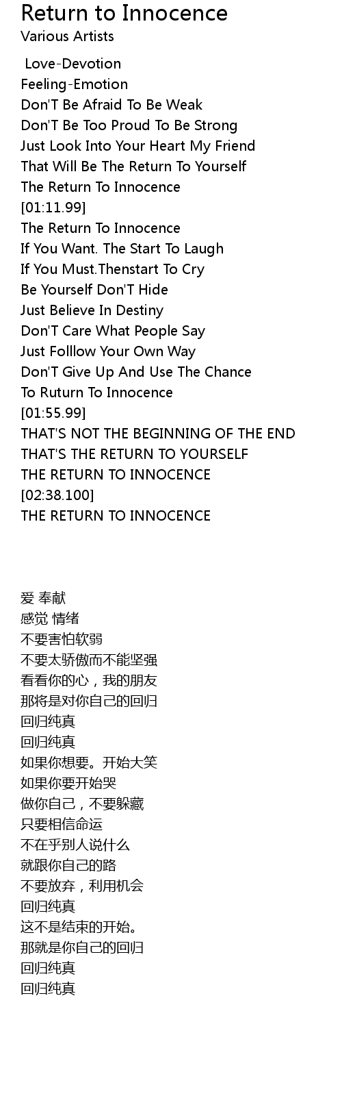 | [02:36.100] | THE RETURN TO INNOCENCE |