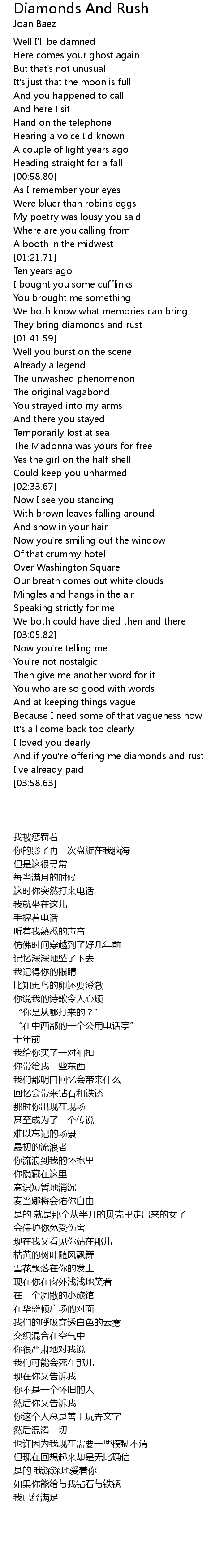And if you're offering me diamonds and rust |
