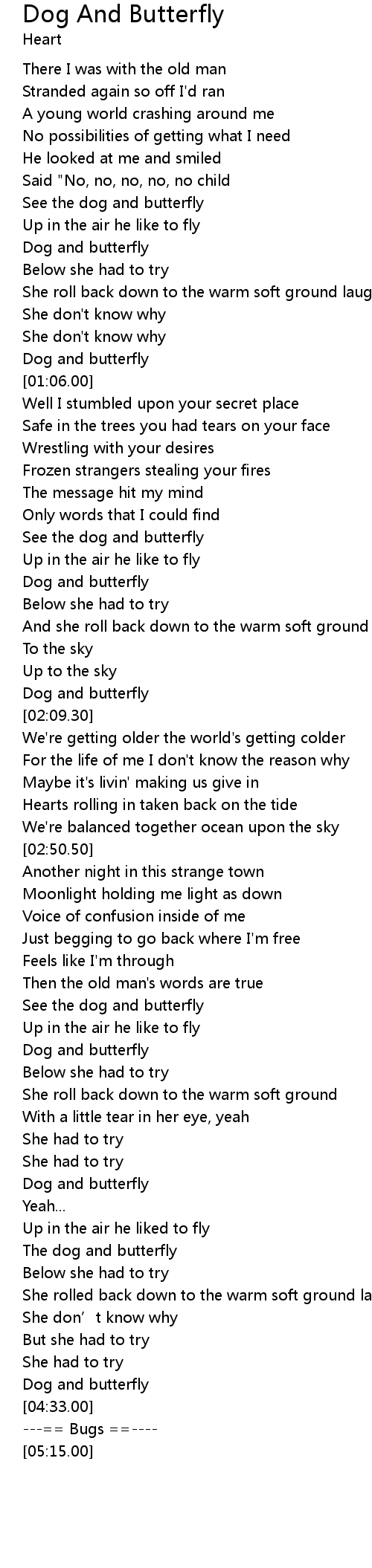 | [04:04.70] | The dog and butterfly |