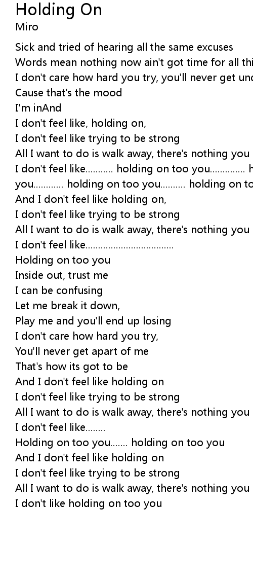 I don't feel like........... holding on too you.............. holding on too you............ holding on too you.......... holding on too you |