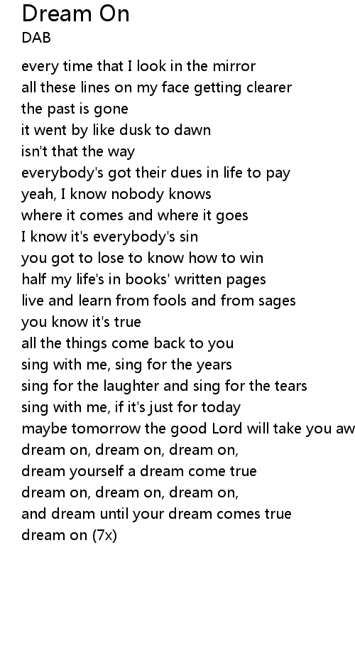 | dream on, dream on, dream on, | |