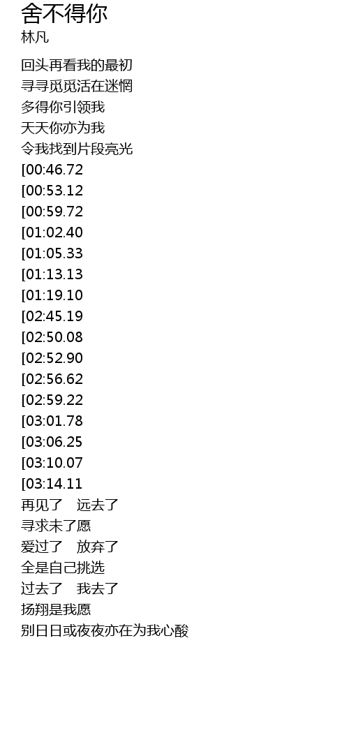 | [03:42.98][02:45.19][01:23.88] | wǒ shě bù dé nǐ |