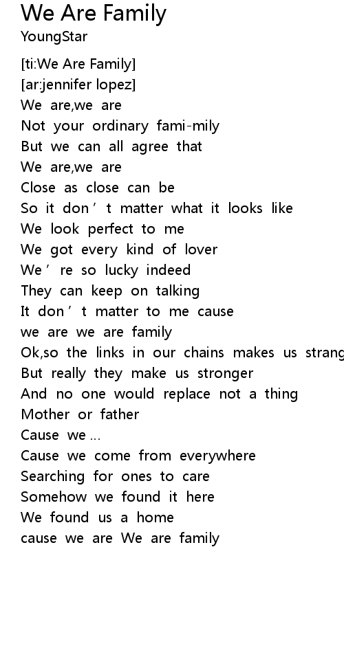 | [01:00.407] | cause we are We are family |