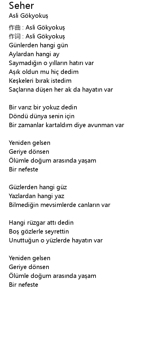 | 作词 : Asli Gökyokuş | |