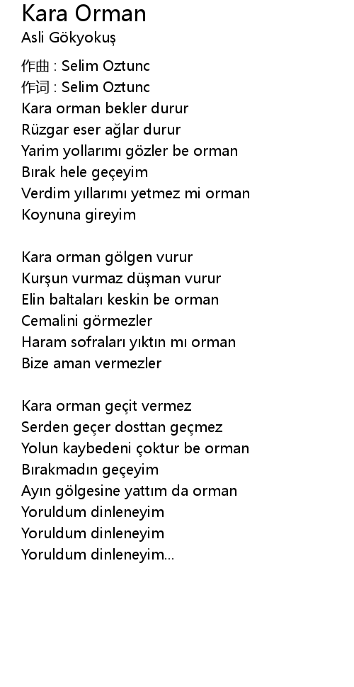 | Yarim yollarımı gözler be orman | |