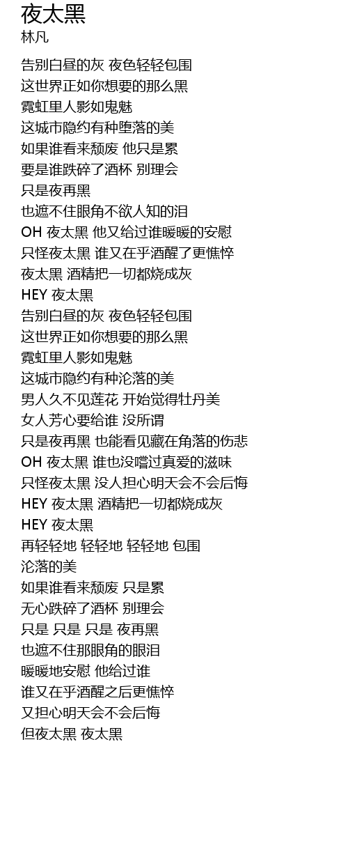 | [01:27] | 夜太黑 酒精把一切都烧成灰 |