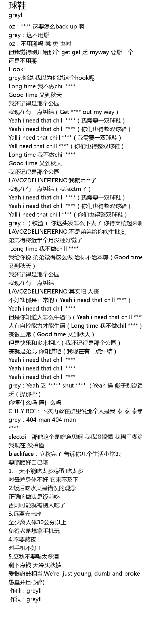 | [01:21] | 但是你知道人怎么牛逼吗(Yeah i need that chill ****) |