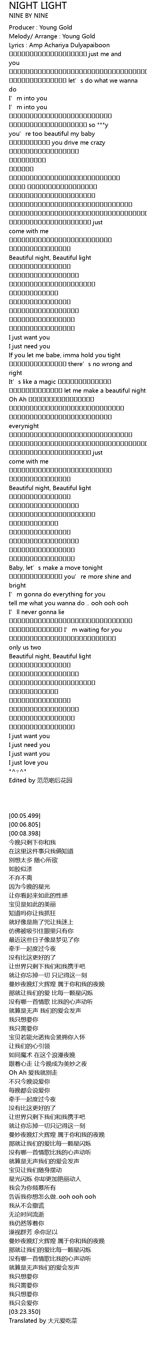 | [01:05.215] | Beautiful night, Beautiful light คืนของฉันและเธอ |