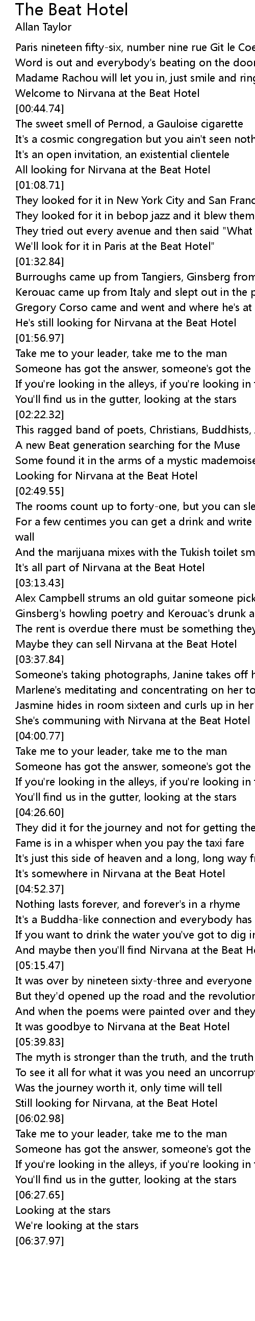 And maybe then you'll find Nirvana at the Beat Hotel |