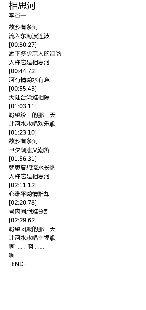 | [00:37.38] | 人称它是相思河 |