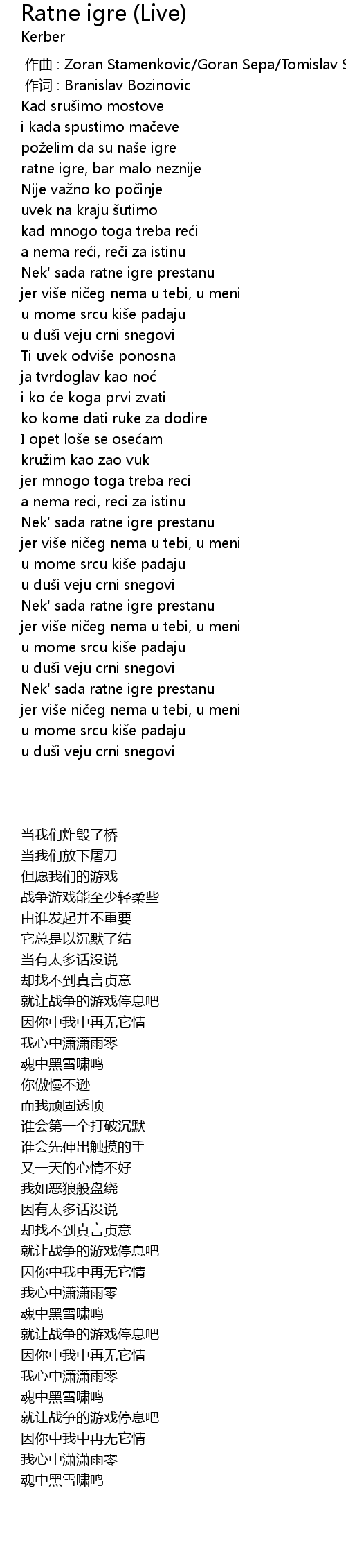 | [00:00.000] | zuo qu : Zoran Stamenkovic Goran Sepa Tomislav S. Nikolic |