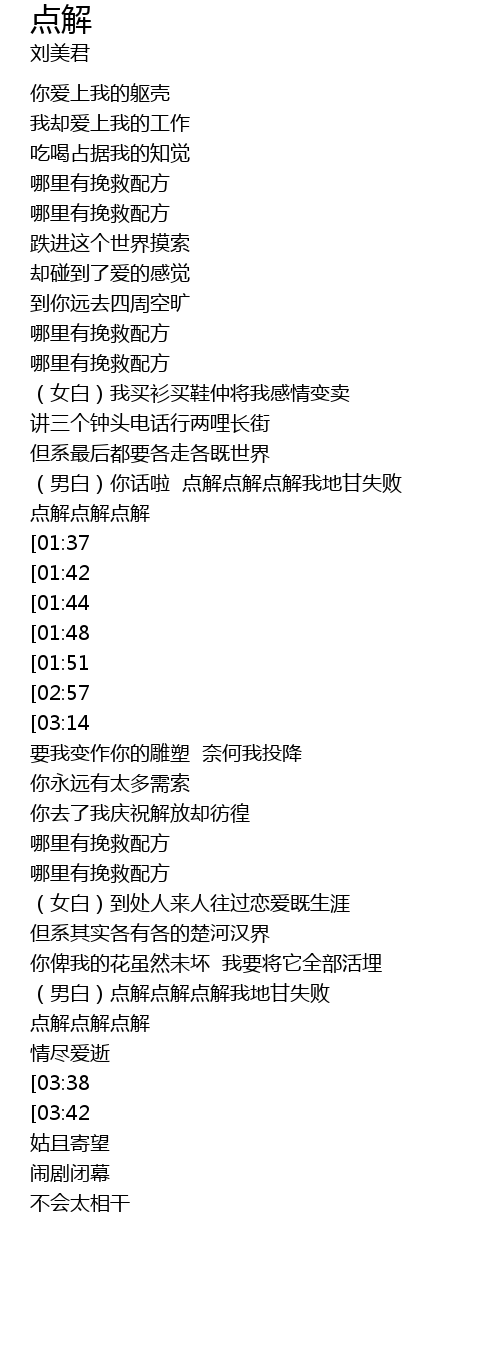 | [00:37] | 你爱上我的躯壳 |