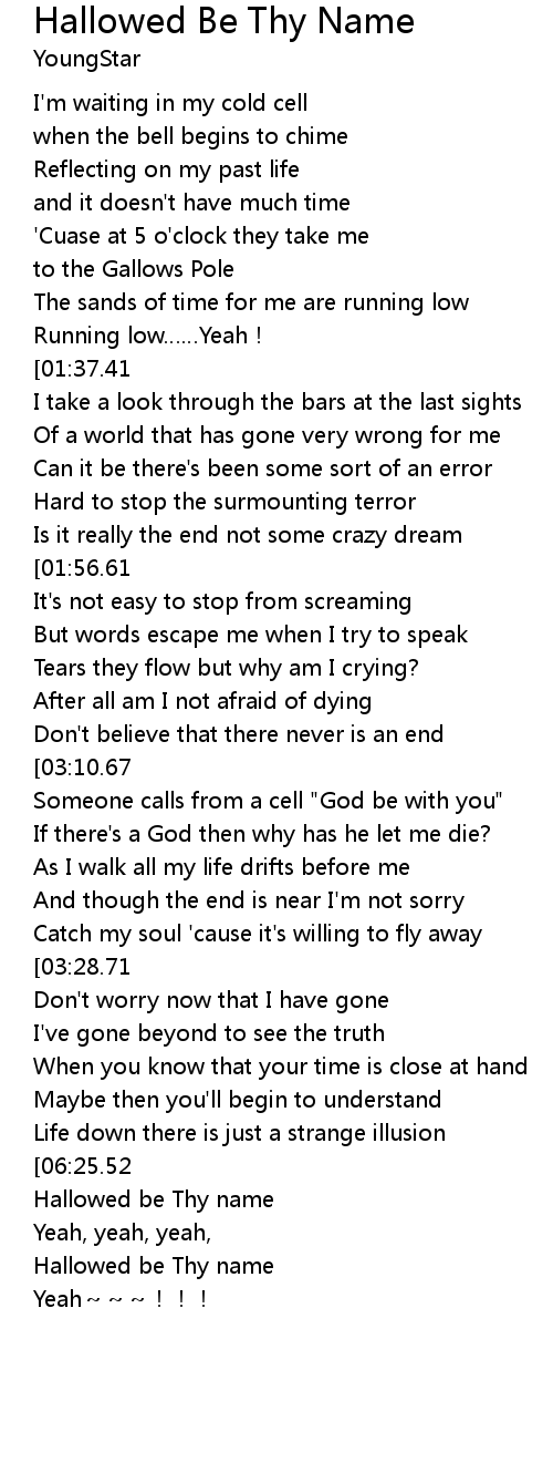| [06:29.94] | Hallowed be Thy name |