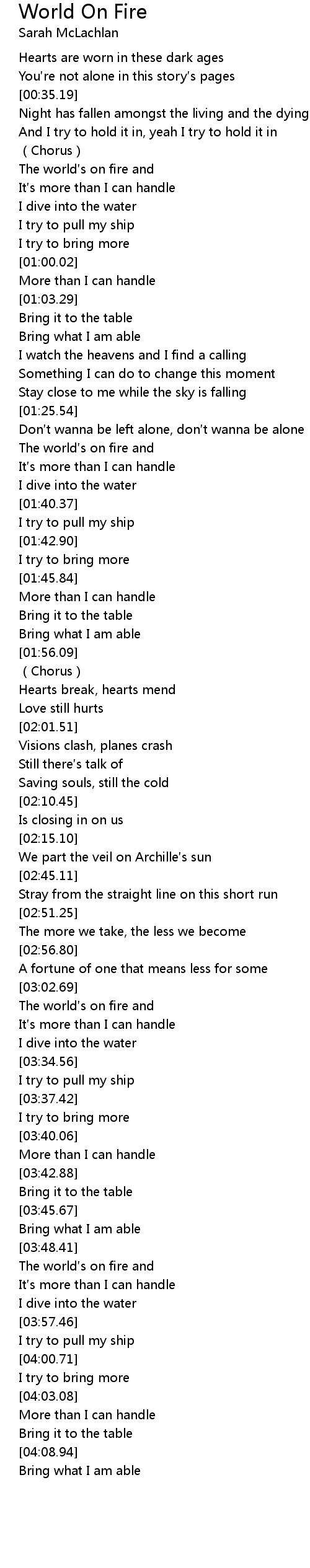 | [01:32.58] | The world s on fire and |