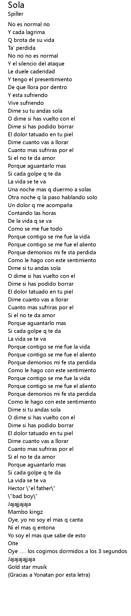 | Gracias a Yonatan por esta letra |