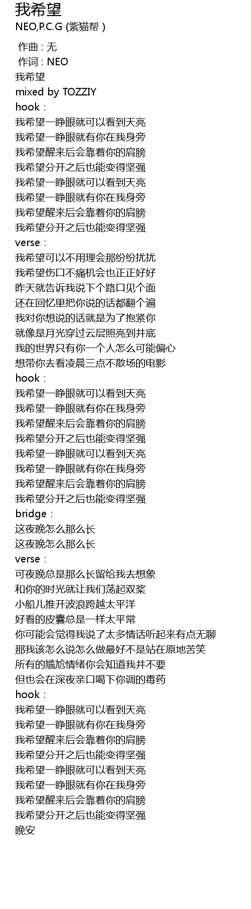 | [00:25.897] | 我希望一睁眼就可以看到天亮 |