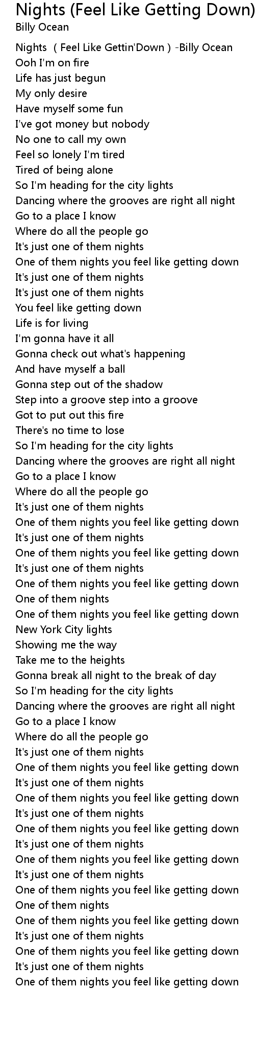 | [00:00.910] | Nights (Feel Like Gettin'Down)-Billy Ocean |