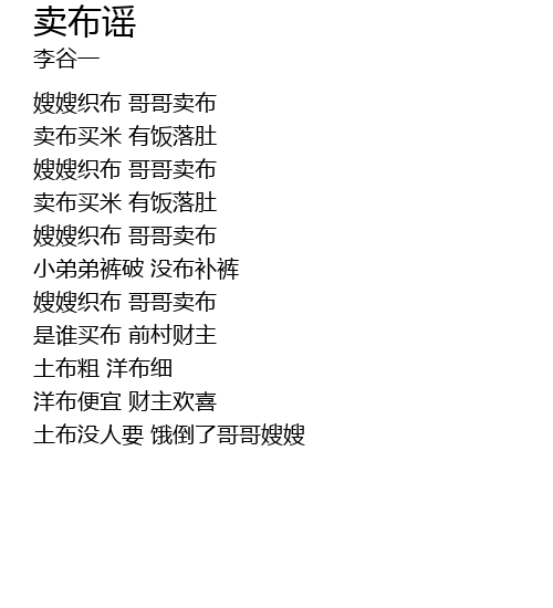 | [00:26.111] | 嫂嫂织布 哥哥卖布 |