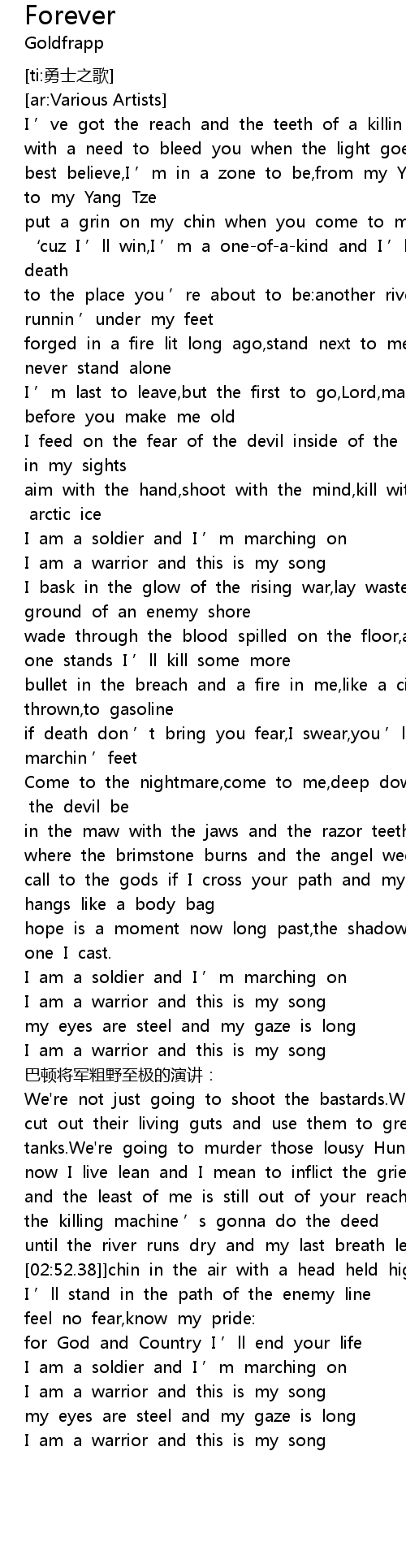 | [03:03.00] | I am a soldier and I ' m marching on |