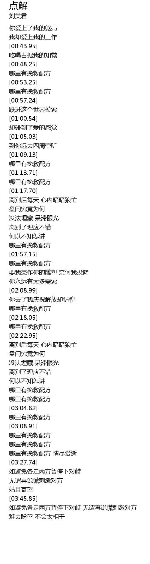| [03:01.41] | 哪里有挽救配方 |