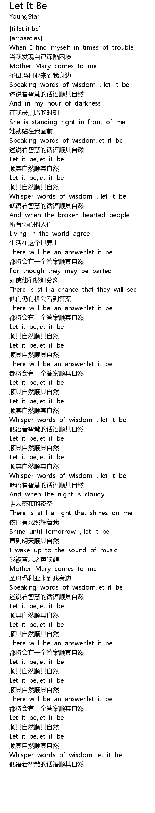 | [03:17.87] | There will be an answer,let it be |