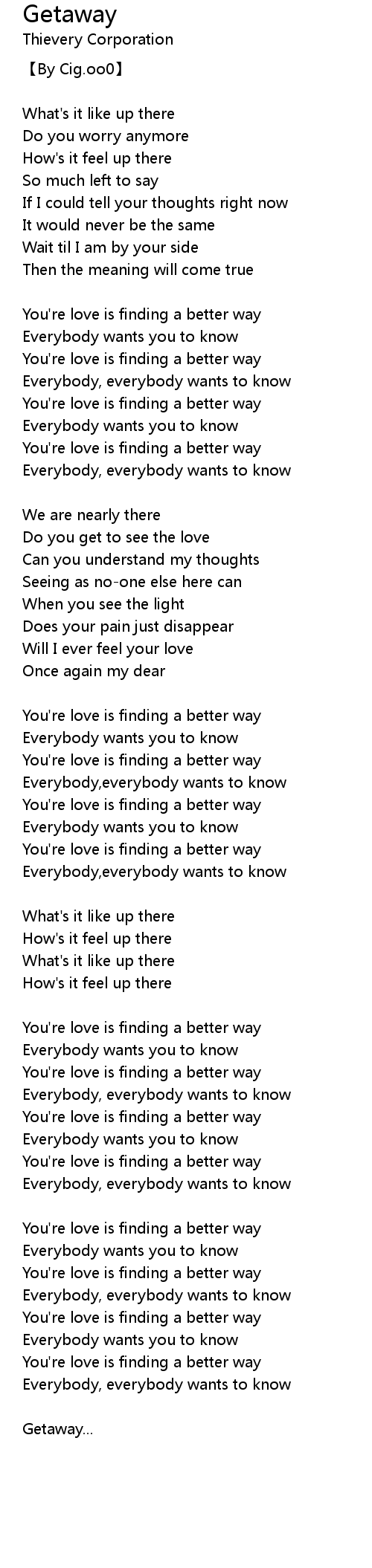 | You' re love is finding a better way | |